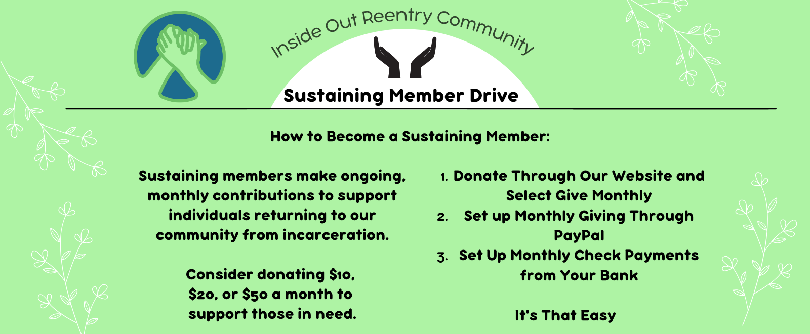 As a small community-based reentry community and 501(c)3, we rely heavily on volunteers, grant funding, and individual donations. Your contribution enables us to continue our work, assisting and supporting returning citizens.